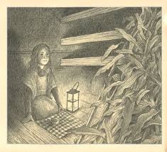 This book focuses on a young girl at the time of the civil war. One day when she goes to collect eggs from the barn, she gets a lingering suspicion that she's not in there alone. This book focuses around the pivotal question "what would you do if you had the chance to help a person find freedom?"